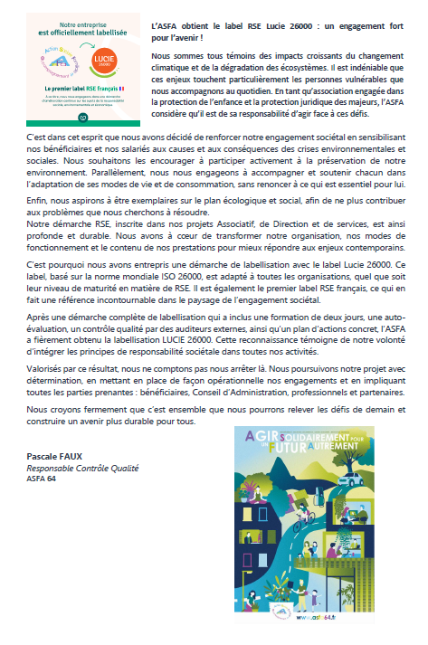 ASFA labellisée Lucie 26000 L’ASFA obtient le label RSE Lucie 26000 : un engagement fort pour l’avenir ! 23 octobre 2025 Suivant